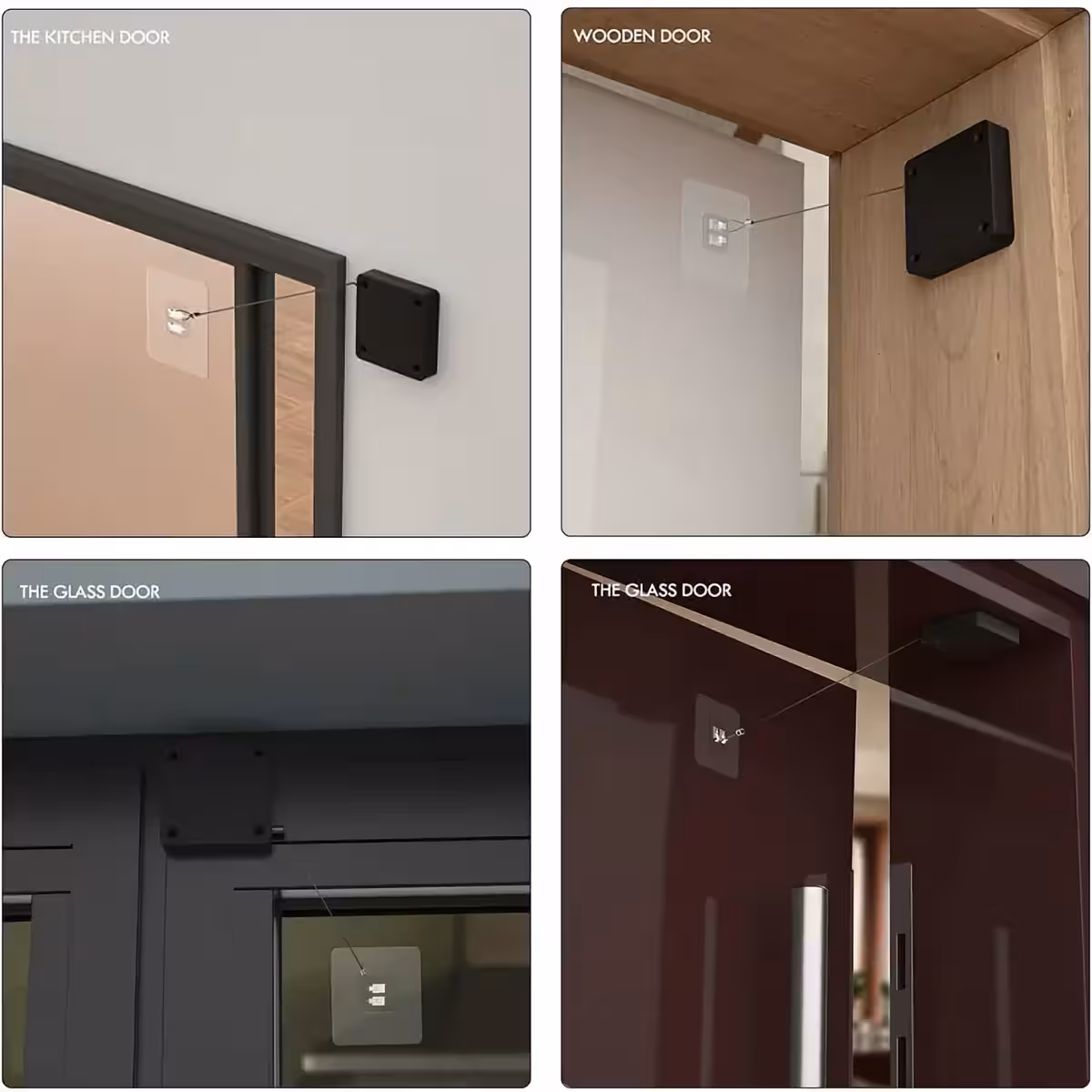 Das automatische Türschließsystem ist eine praktische und effiziente Lösung zum mühelosen Schließen von Türen. Ideal für Wohnungen, Büros, gewerbliche und industrielle Räume, arbeitet dieses Gerät mit einem gespannnten Kabel und lässt sich einfach ohne Bohren montieren.