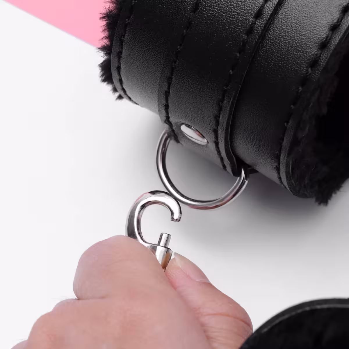 Hergestellt aus weichem Leder und hochwertigem Plüschfutter bieten die Handschellen maximalen Komfort und verhindern Hautreizungen, selbst bei längerem Tragen. Die abnehmbare Kette ermöglicht eine flexible Fesselung, um das Erlebnis an eure Vorlieben anzupassen.