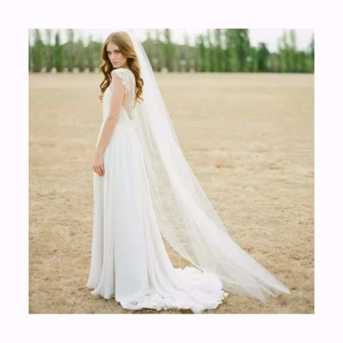 Der lange Brautschleier ist ein elegantes und beeindruckendes Accessoire, das deiner Erscheinung zusätzlichen Stil und Raffinesse verleiht.