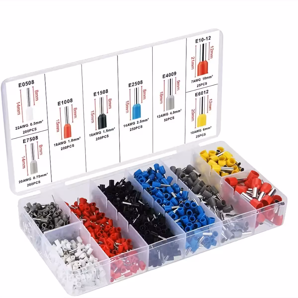 Das Set enthält außerdem 1200 isolierte Aderendhülsen (Endhülsen) für mehradrige elektrische Leiter, ideal für verschiedene Querschnitte: