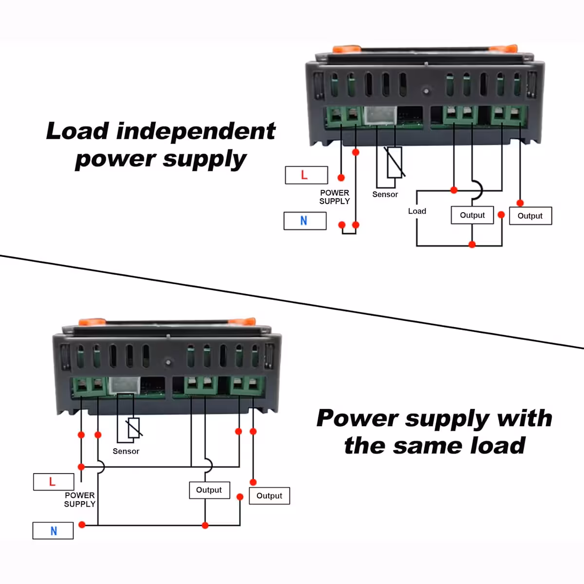 - Relaisausgänge: 2 x 10A (einer für Temperatur, einer für Feuchtigkeit)