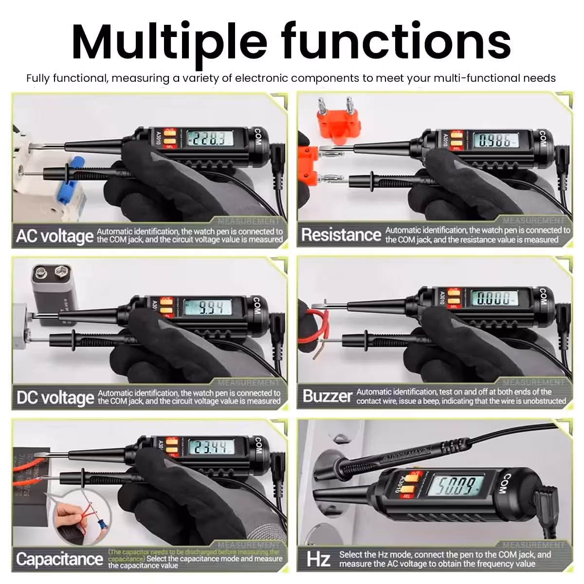 Entdecke einen multifunktionalen Spannungsprüfer, ideal für Kfz-Diagnosen, DIY-Elektroprojekte und Heimreparaturen. Dieser digitale Spannungsprüfer-Stift misst AC/DC-Spannung, Widerstand, Frequenz und verfügt über NCV-Funktion, True-RMS und beleuchtetes Display. Unverzichtbar für jeden Profi oder Elektronik-Enthusiasten.