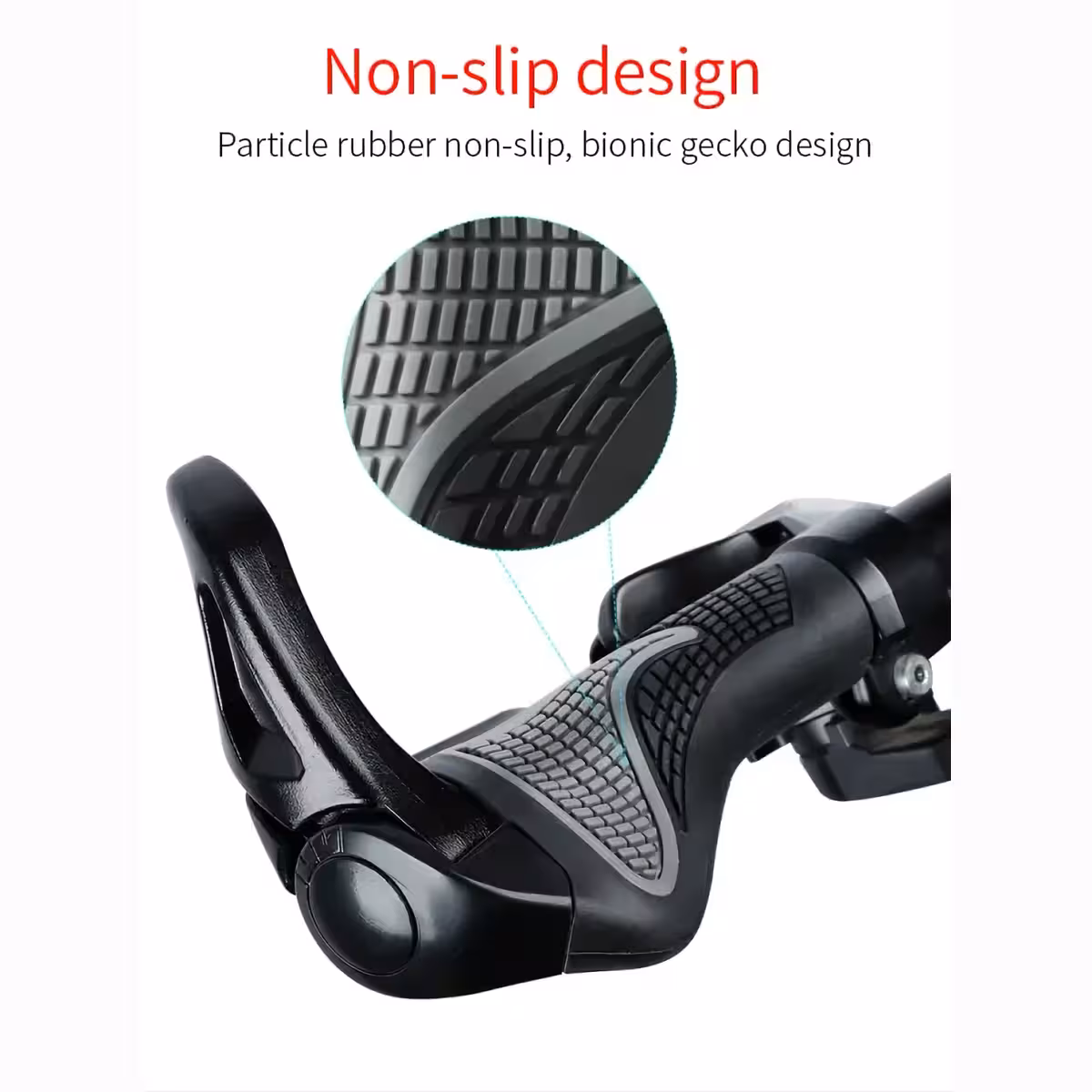Die Griffe haben ein Wabenmuster, das selbst bei Schweiß oder Regen für rutschfesten Halt sorgt. Die ergonomische Form vergrößert die Kontaktfläche mit der Handfläche, reduziert Ermüdung und die während der Fahrt übertragenen Vibrationen.