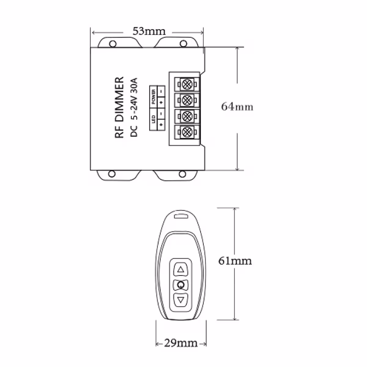 LED-Band Dimmer 5V, 12V, 24V, 30A mit RF-Fernbedienung Wireless
