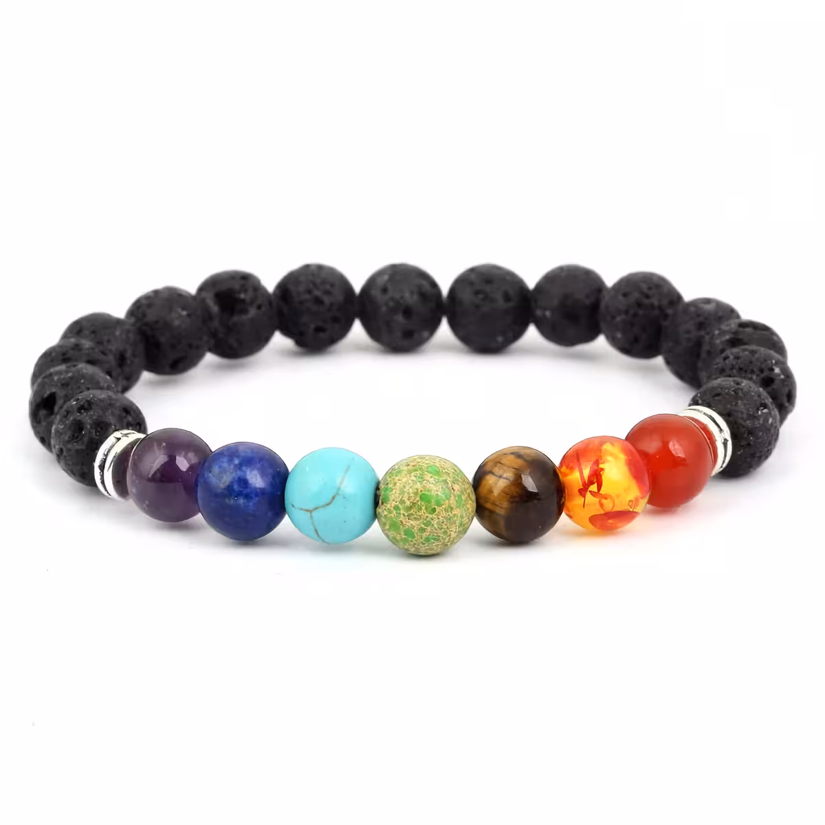 Armband mit natürlichem Vulkanstein 7 Chakra – Amethyst, Lapislazuli, Bernstein, Tigerauge, Achat