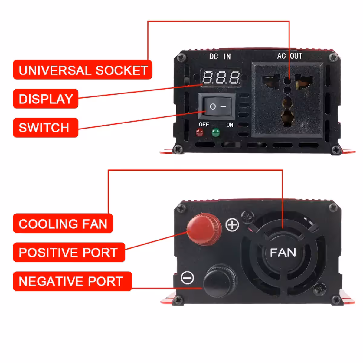 Der 1600W Wechselrichter mit reiner Sinuswelle ist ideal für die Versorgung empfindlicher Geräte und elektrischer Ausrüstung. Er liefert eine stabile und saubere Ausgangsspannung, perfekt für den Hausgebrauch, Solarsysteme, Camping oder Notstromversorgung.
