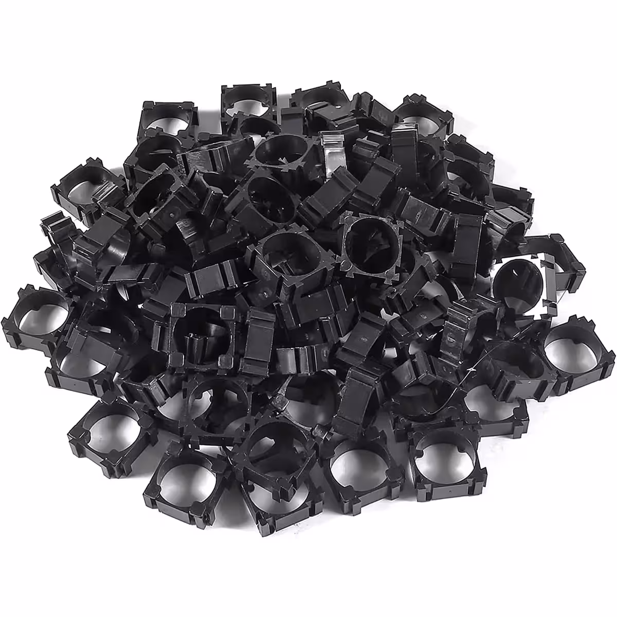 Set mit 100 modularen Halterungen für Li-Ion 18650 Zellen – ABS Kunststoffklammern