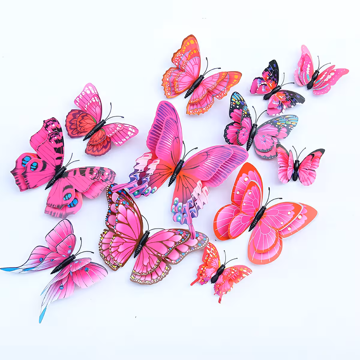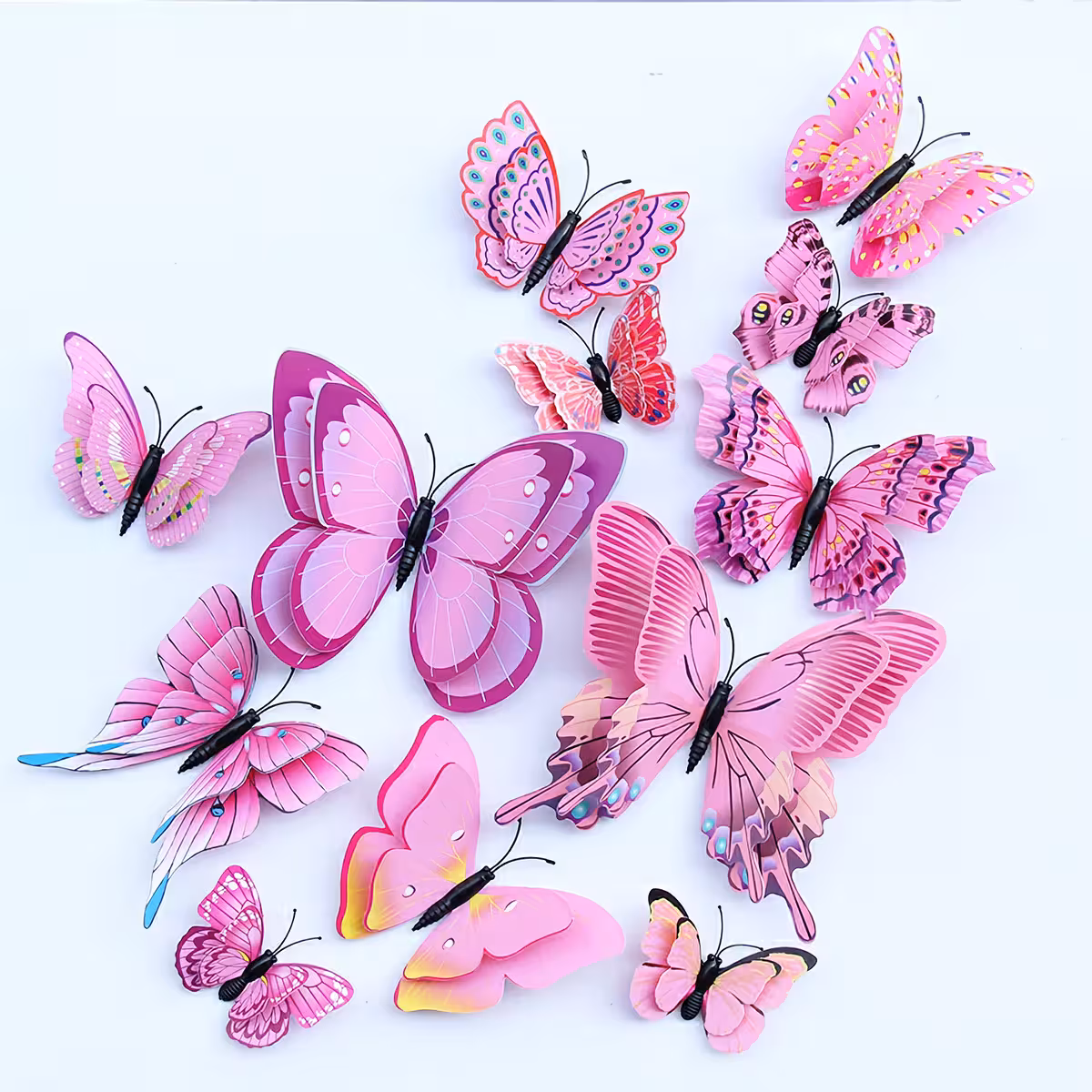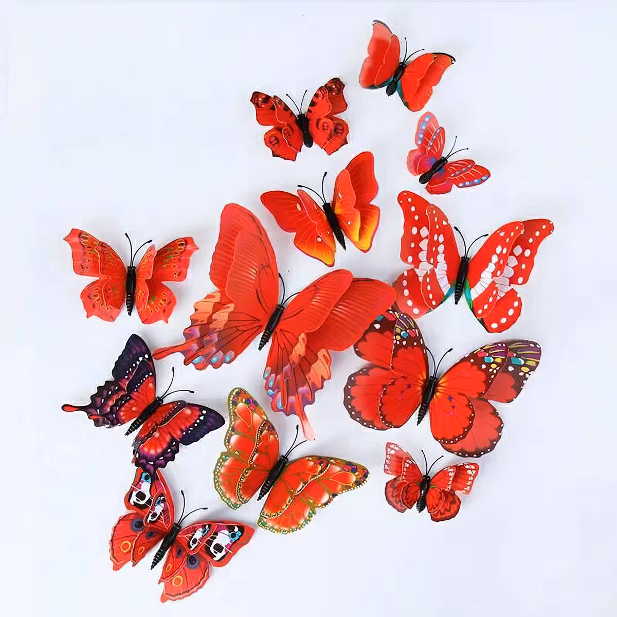 Ein Set enthält 12 Schmetterlinge in verschiedenen Größen und Modellen:
