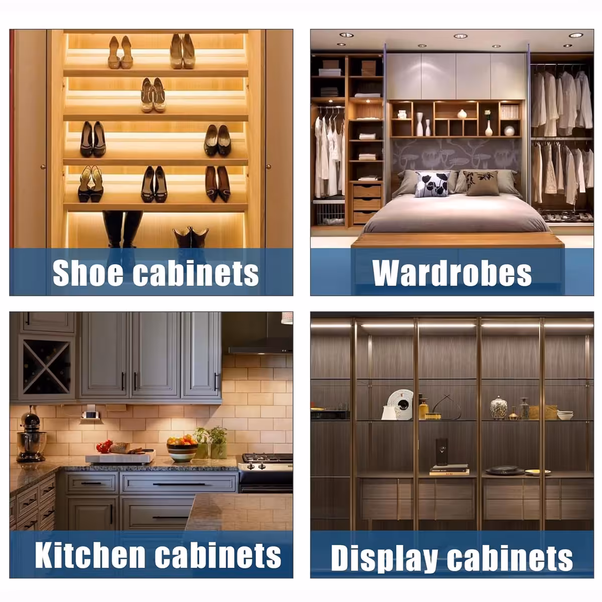 Dieses Set mit 2 Schaltern mit Sensor für Schranktüren bietet eine automatische Beleuchtung beim Öffnen der Tür und das Ausschalten beim Schließen, genau wie bei einem Kühlschrank. Ideal für modernes Möbel, Schränke, Kleiderschränke, Vitrinen oder Aufbewahrungseinheiten.