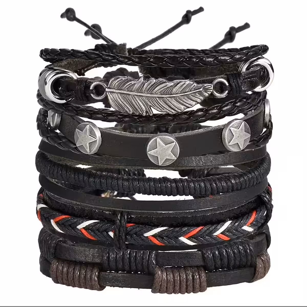Set aus 5 Herren-Armbändern aus echtem Leder – Luxury, Handmade, verstellbar