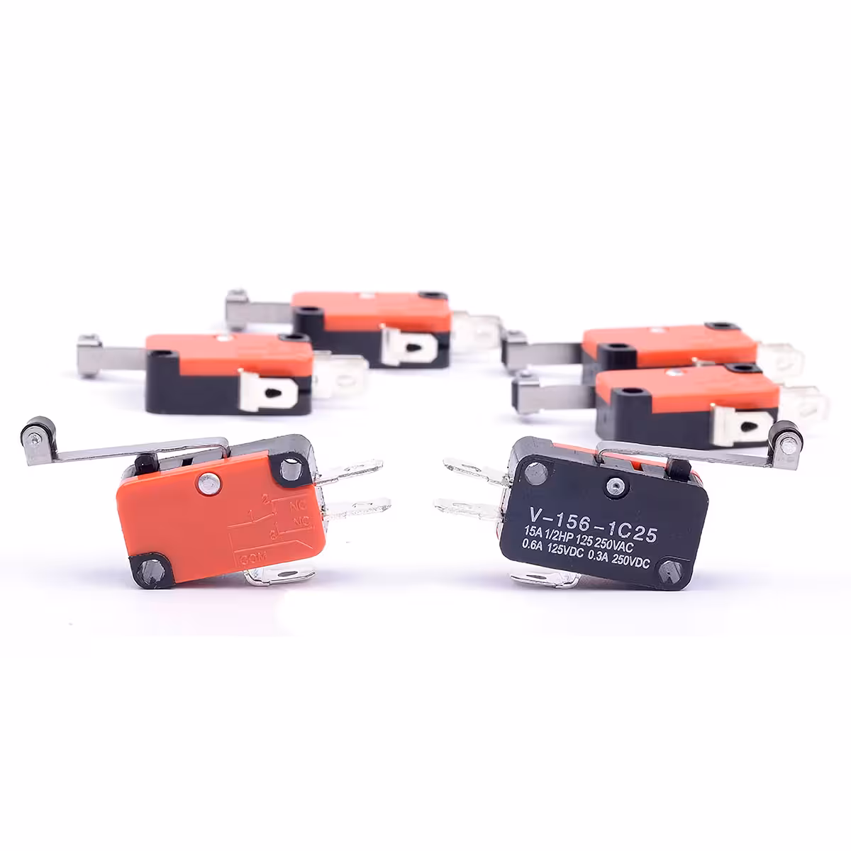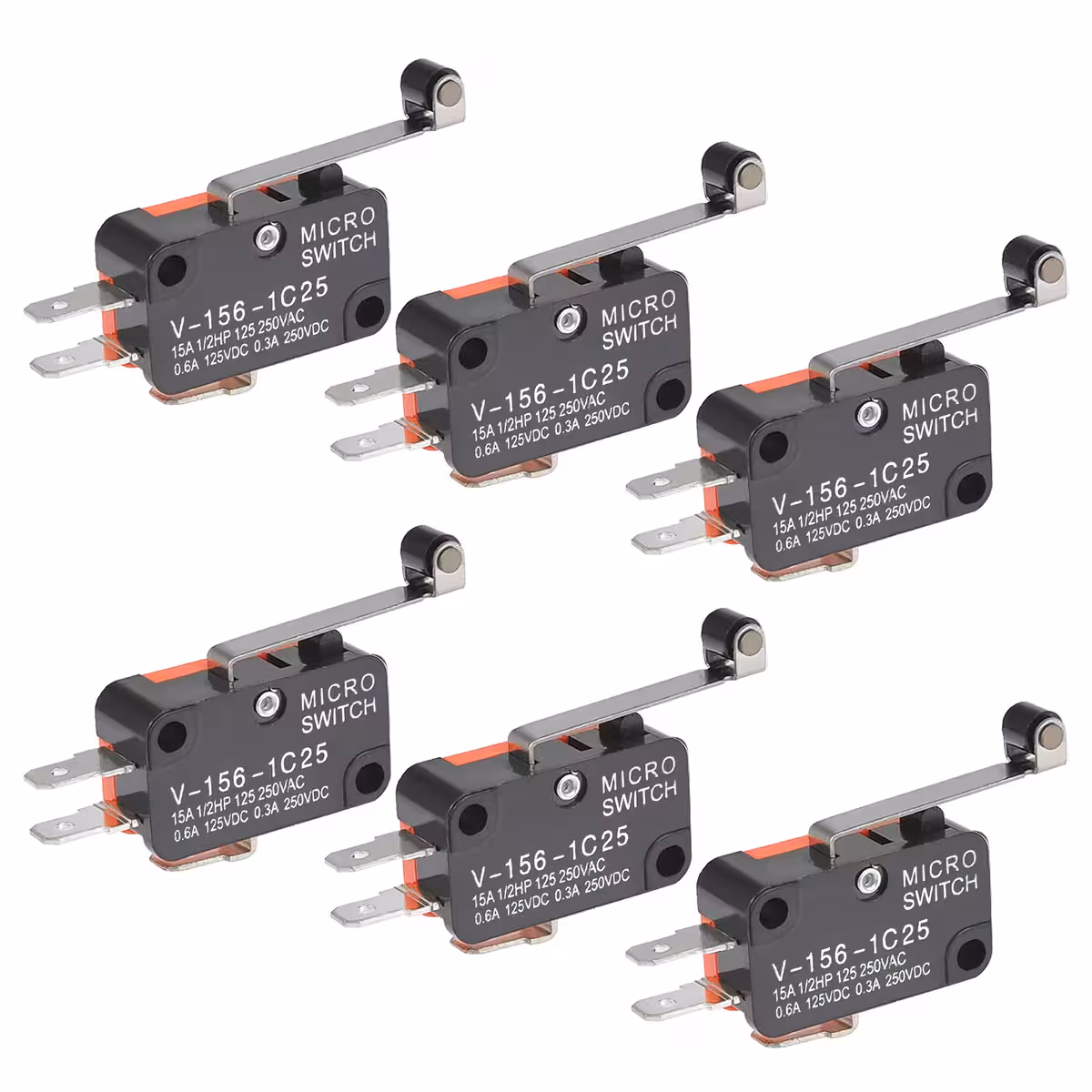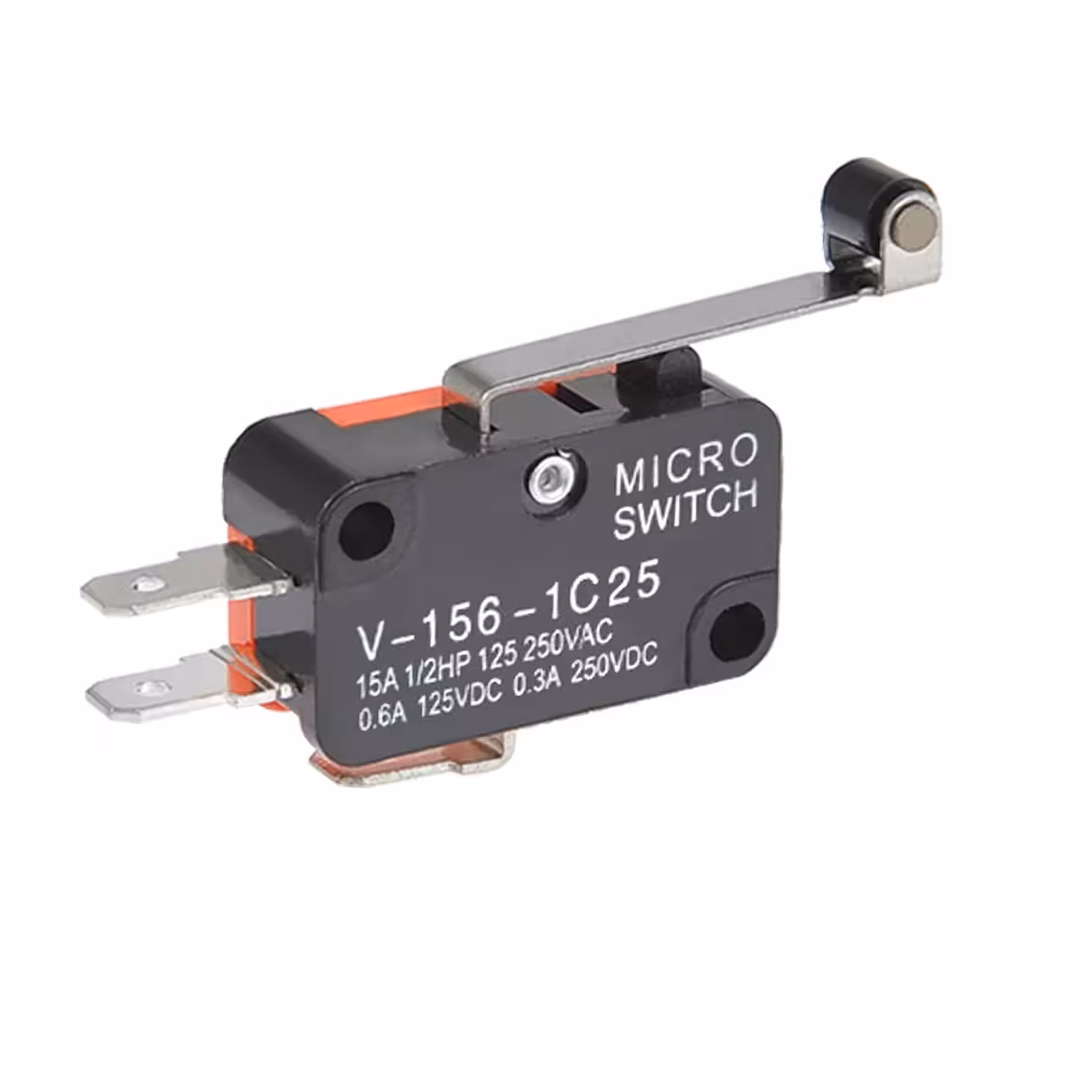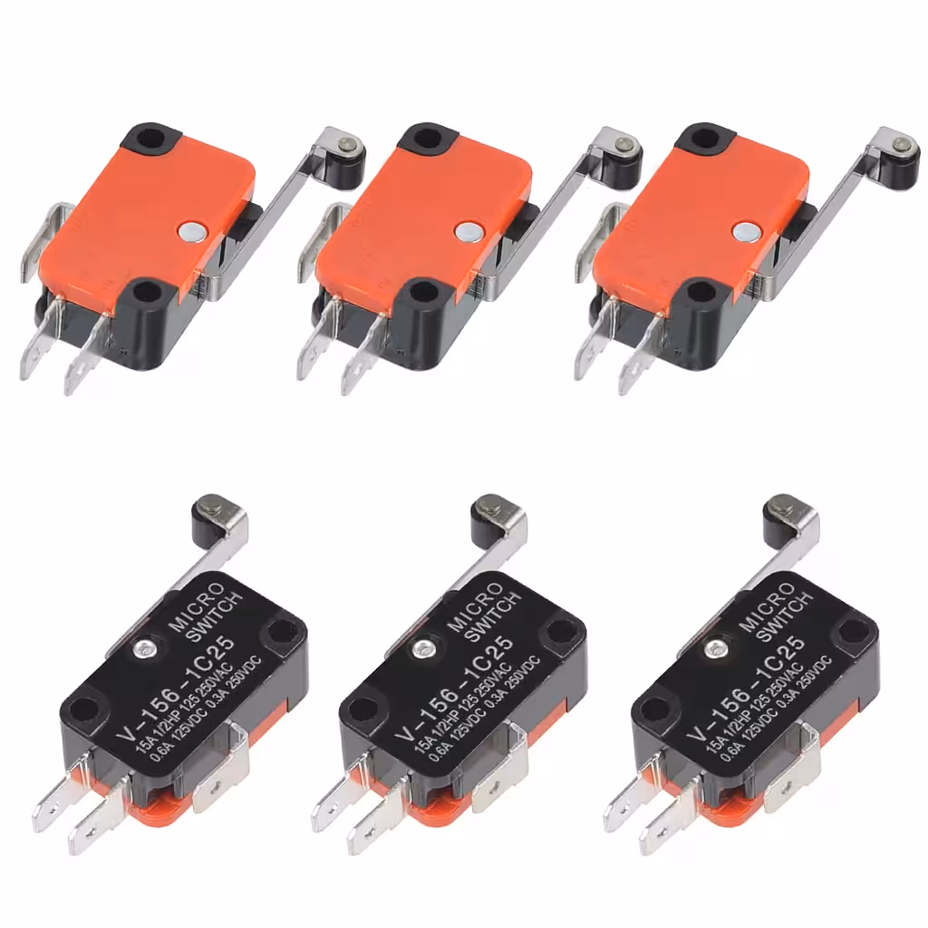Das Modell V-156-1C25 ist ein Fahrtbegrenzer-Schalter mit Rolle, Feder und langem Hebel, der für AC- und DC-Schaltungen konzipiert wurde. Er bietet eine schnelle Reaktion durch den Momentary Snap-Action Mechanismus und ist ideal für industrielle Anwendungen, Automatisierungsgeräte und Bewegungskontrollsysteme. Dieser Mikroschalter wird verwendet, um die Position und Bewegungsgrenzen von mechanischen Komponenten zu überwachen und deren Überschreitung automatisch zu signalisieren. Dank seiner robusten Konstruktion aus Metall und Kunststoff ist er in anspruchsvollen Umgebungen beständig und gewährleistet eine stabile langfristige Funktion.