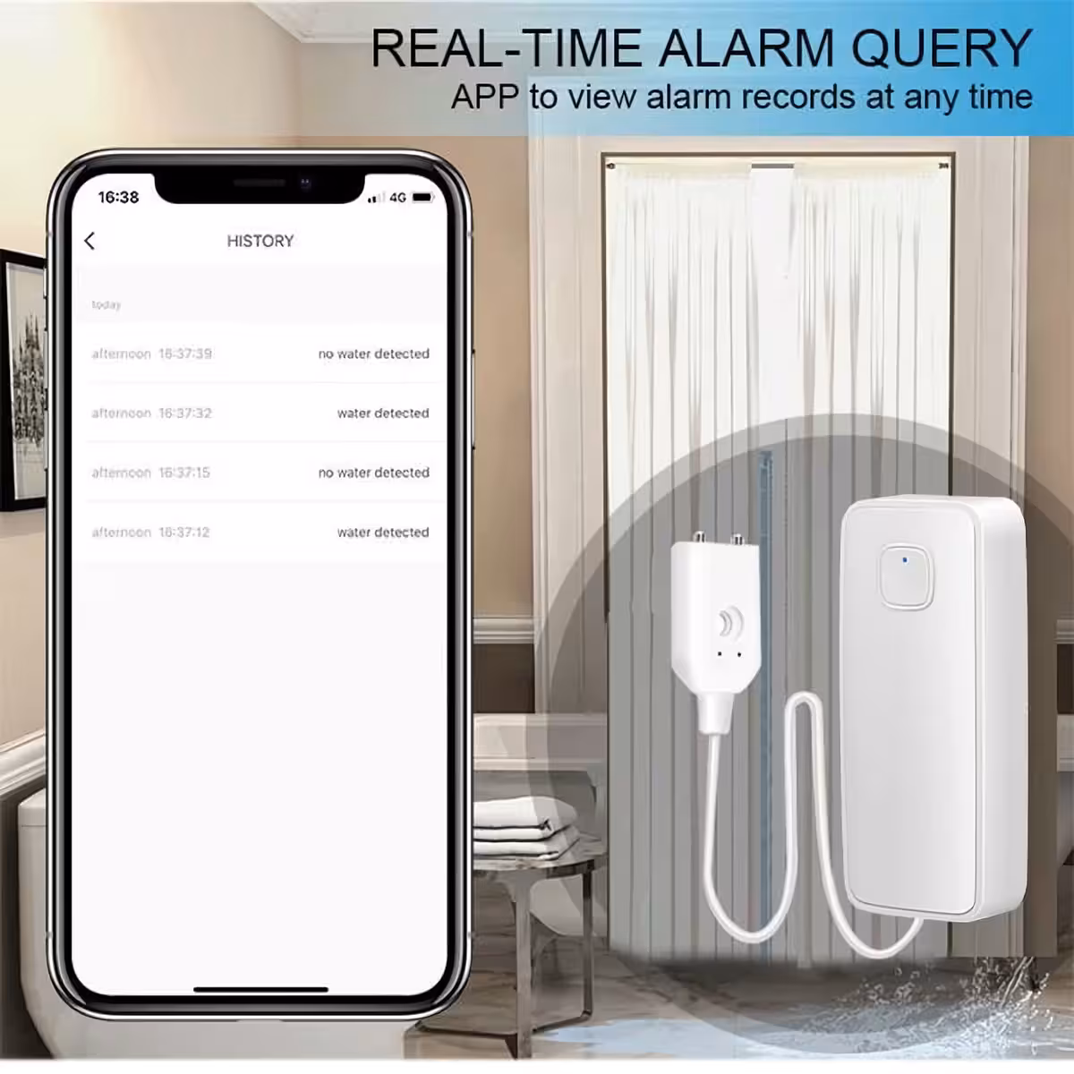 Sofortige Leckerkennung: Akustische Alarme und Push-Benachrichtigungen auf das Handy.