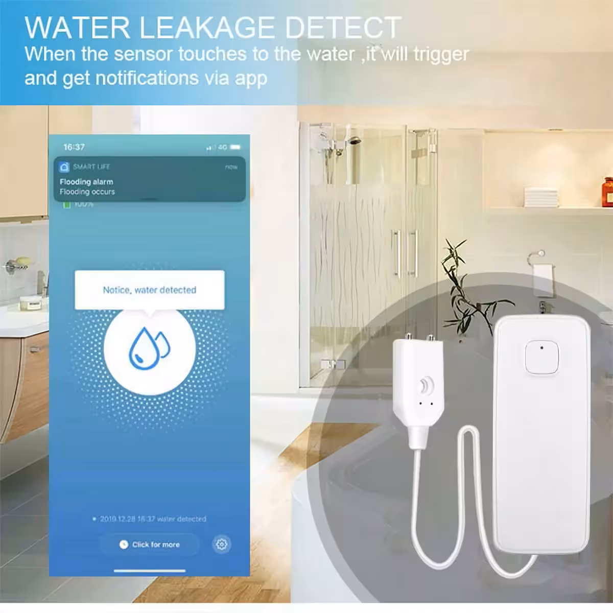 WiFi Wassersensor Tuya Smart Life – Wasserleck-Alarm mit Benachrichtigung aufs Handy